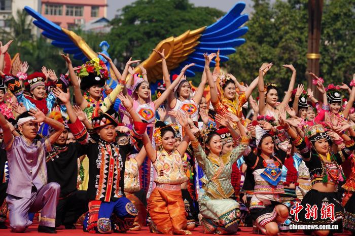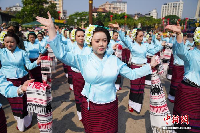 图为傣族保守圆阵。中新社记者 刘冉阳 摄