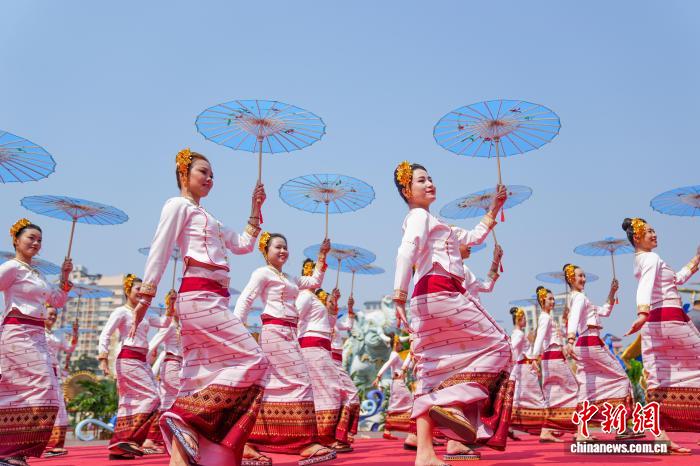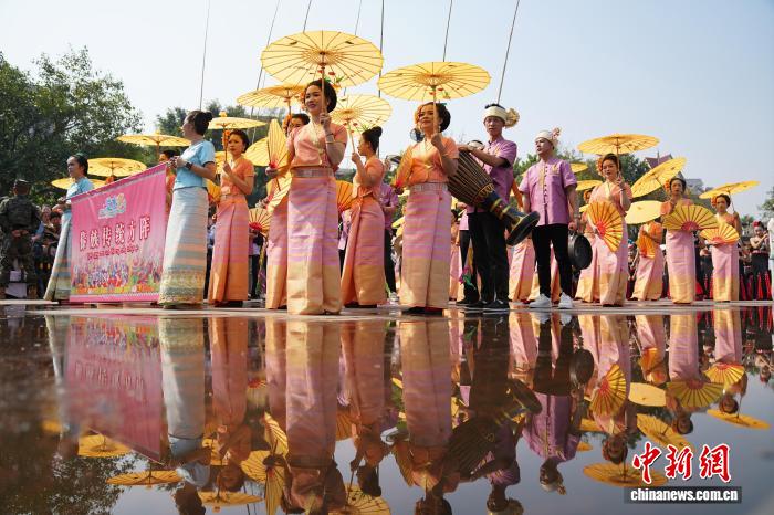 图为傣族彩伞圆阵。中新社记者 刘冉阳 摄